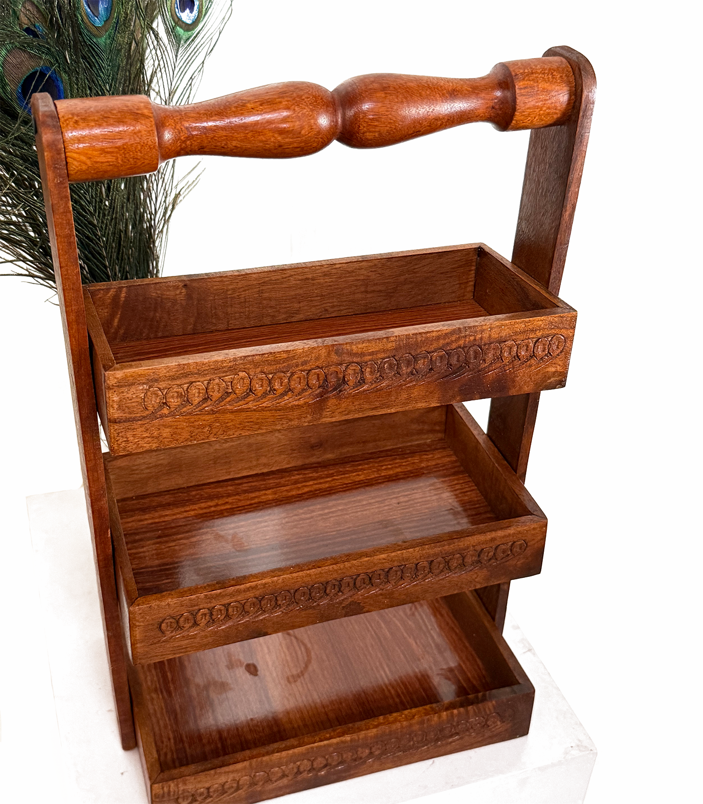 The multi-level design allows for maximum storage in minimum space, while the natural wood finish adds a rustic charm to your cooking corner. Whether you have a modern kitchen or a desi one, this stand blends beautifully with any decor.